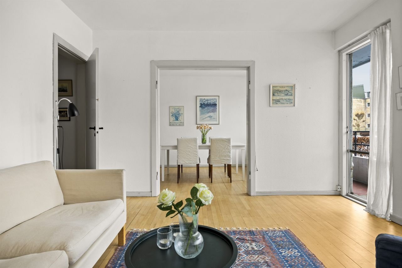 Lejlighedens naturlige samlingspunkt er den store, lyse stue, som er åbnet op mod en hyggelig spisestue. Her er god plads til både hverdag og gæster, og spisestuen kan nemt omdannes til et ekstra værelse, hvis behovet opstår. Fra stuen er der direkte udgang til en solrig altan, hvor eftermiddags- og aftensolen kan nydes i selskab med venner og familie.